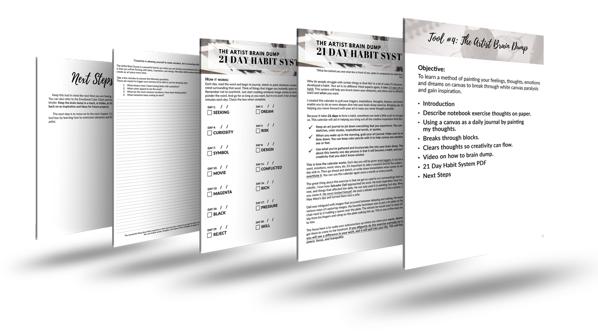 All of this is 100% possible with The Artist Brain Dump. It will not only improve your ability to create art, it will have a strong impact on how you see life.
