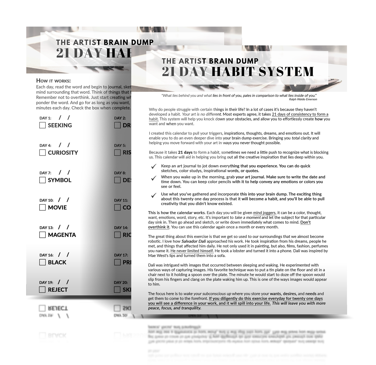 The Artists Brain Dump System Including Video Tutorial, Workbook and 21 Day Calendar ($199 value)