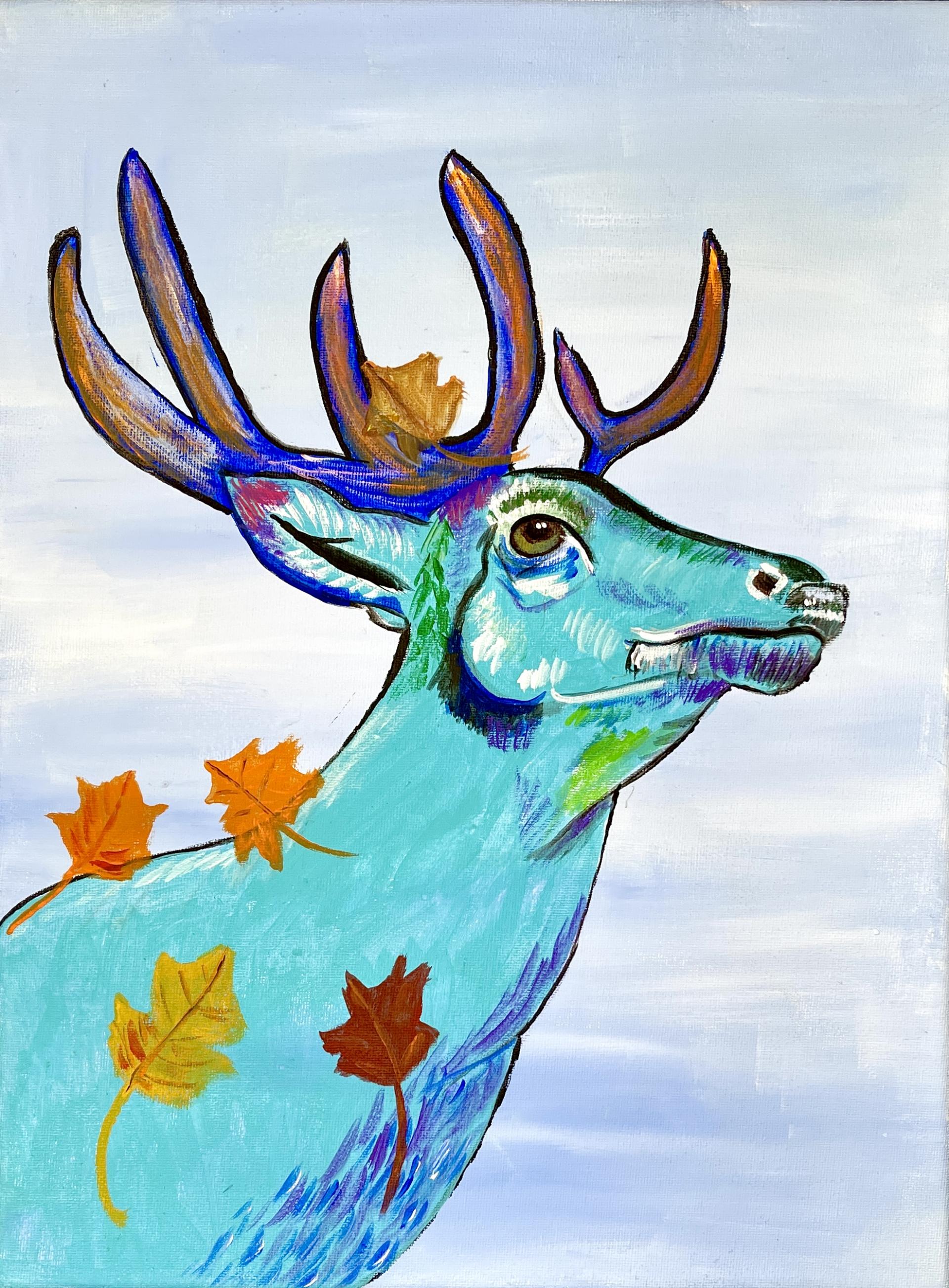 Come paint with me for 2 hours! Let's have fun creating this fun, colorful deer for autumn. Tell your friends, and let's make it a painting party! Don't miss out!