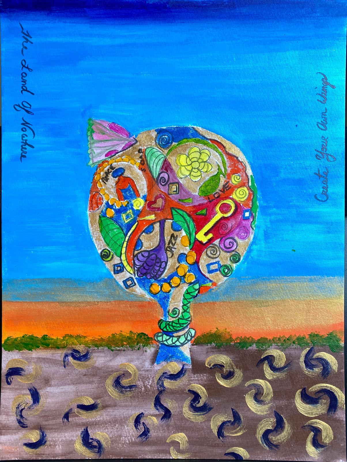The point of it all, besides community and interaction, was for you to see that even if you just start without any idea at all, something will happen if you put in the effort. The key is to just do it! You don’t have to think something grand up for you to make something grand. The important part is to get yourself used to the strokes and paint textures(or whatever medium you use) and to build muscle memory and motivation through experience with the canvas. You may discover things you wouldn’t if you had planned it out, such as fun brush strokes or the texture a type of medium has when it dries that you can then apply to other pieces. You truly never know when you fly by the seat of your pants!
